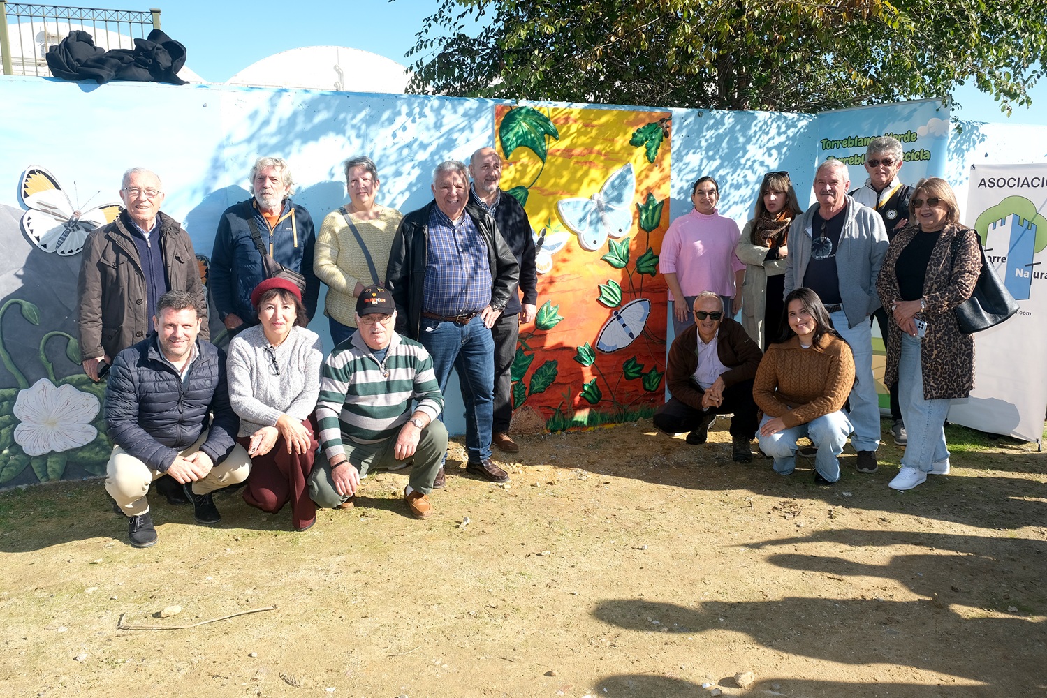 La responsable de Fundación Unicaja en Sevilla, Sara Rodríguez, participó recientemente en la inauguración de uno de los murales creados dentro del proyecto, acompañada por Ana María Gutiérrez y Ángel Luis Álvarez, coordinadores de la iniciativa, así como por la junta directiva de Torrenatura.