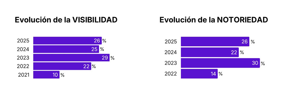 De acuerdo con los resultados de la quinta edición del estudio ‘La visibilidad de las mujeres deportistas en los medios de comunicación’, realizado por Apple Tree y Acceso, durante el año 2025 el deporte femenino alcanzó una cuota de visibilidad (número de noticias publicadas) en los medios de comunicación del 26% frente a las competiciones masculinas, lo que supone apenas un aumento de un punto con respecto a 2024 (25%). En el caso de la notoriedad (audiencia), las competiciones deportivas femeninas consiguieron un 26%.