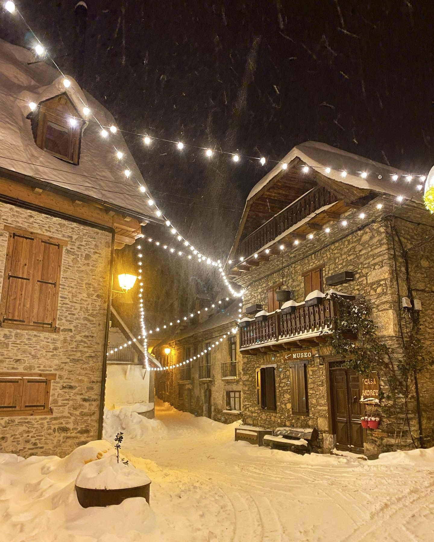 Es el municipio habitado más alto del valle de Arán, situado a casi 1.500 metros de altitud. Este pueblo de cuento, con sus casitas de piedra y sus balcones llenos de flores, es un escenario perfecto para celebrar las navidades.