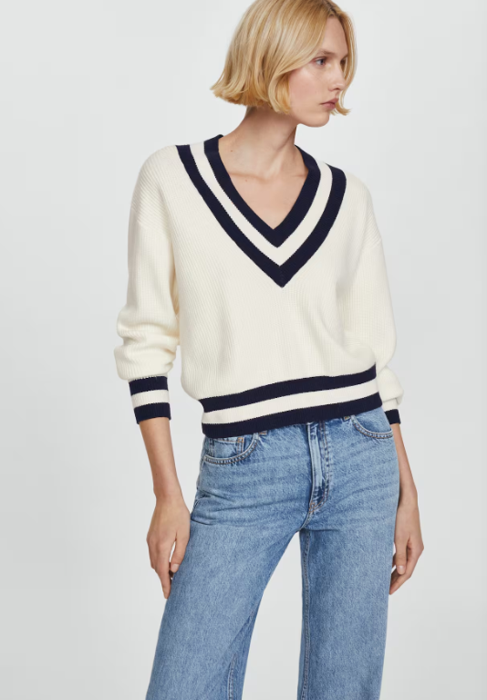 Jersey con pronunciado cuello de pico en blanco y negro de Mango (29,99 euros).