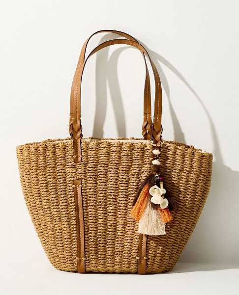 Más clásico es este bolso shopper de paja con doble asa de mano que cuenta con un detalle veraniego: una borla en tonos tierra con conchas. Parfois (27,99 euros).