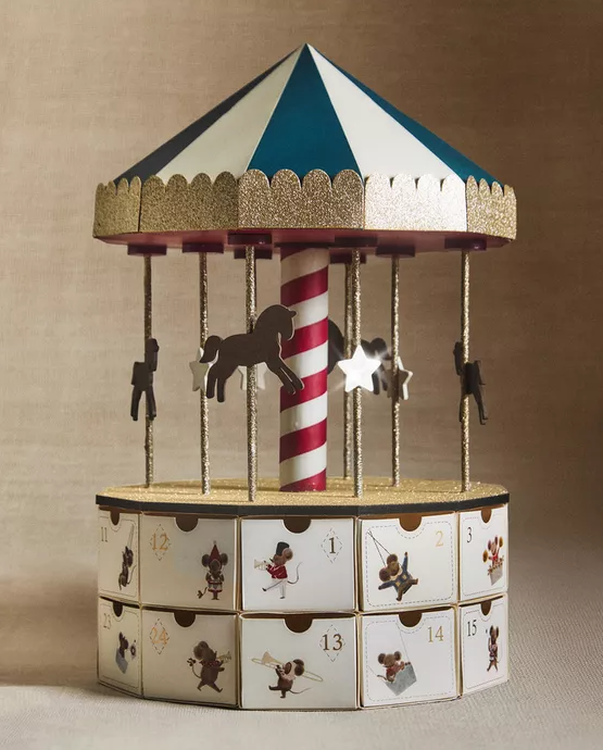 Si ninguno de los anteriores te convence, no te preocupes, puedes crear tu propio calendario de adviento. En cada casilla puedes meter pequeños regalos, detalles hechos a mano, notas especiales o lo que se te ocurra. Zara Home ha diseñado un precioso calendario de papel con forma de carrusel con 24 ventanas numeradas. Zara Home (39,99 euros).