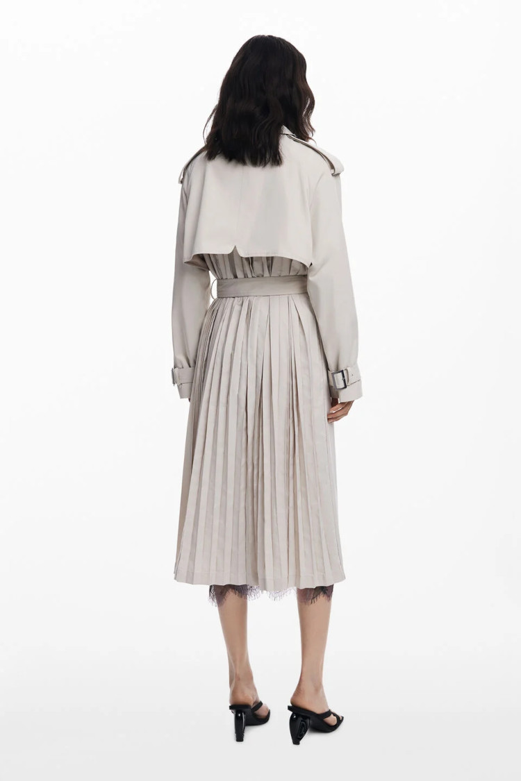 Lo que más llama la atención de esta gabardina es su original espalda plisada.