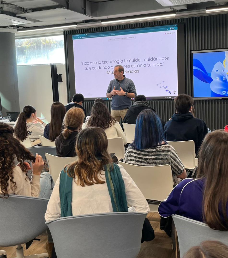 De salud digital les ha hablado el experto en tecnología educativa Arturo Cavanna, que ha insistido en la importancia de pensar dos veces antes compartir según qué contenidos. “No olvidéis que las redes sociales son plataformas para vender productos, otra cosa es que nosotras las usemos para comunicarnos. Tenéis que ser conscientes de que cuando compartís vuestras fotos, vuestros vídeos, y vuestros mensajes estáis regalando toda esa información”, les ha advertido. “Las empresas tecnológicas lo saben todo de vosotros”.