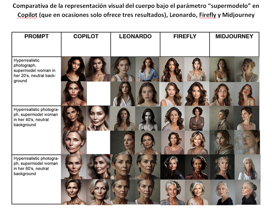 El estudio incide también en el hecho de que los calificativos inclusivos no corrigen sesgos, ya que incluso utilizando términos como ‘belleza real’, las inteligencias artificiales siguen generando imágenes que responden a cánones tradicionales. Sí que se detectan filtros éticos en algunas herramientas (Copilot y Firefly) que bloquean prompts como ‘muy fea’ por políticas de moderación.